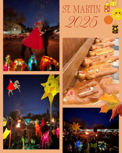 Durch die Straßen auf und nieder… Auch dieses Jahr zogen die Kinder der St. Franziskusschule mit St. Martin durch die Straßen und ihre tollen Laternen leuchteten in der Nacht. Morgens teilten sich die Klassen leckere Weckmänner.